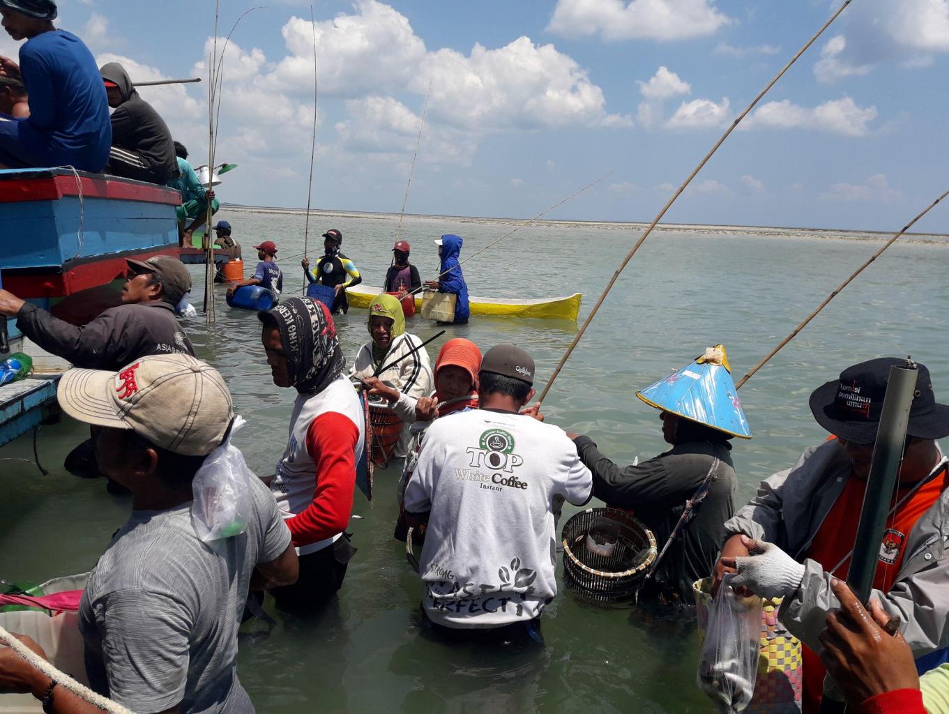 Para peserta/wisatawan yang ikut memancing akan di antar menggunakan perahu ke tempat pemancingan. Umpan memancing menggunakan udang yang juga diperoleh dari laut Desa Terong. Lamanya waktu memancing disesuaikan dengan waktu saat air laut mulai pasang kembali, makanya kemudian para pemandu lokal selalu mendampingi tiap wisatawan yang telah ditentukan tempat yang aman dan nyaman untuk mancing ikan tersebut.
