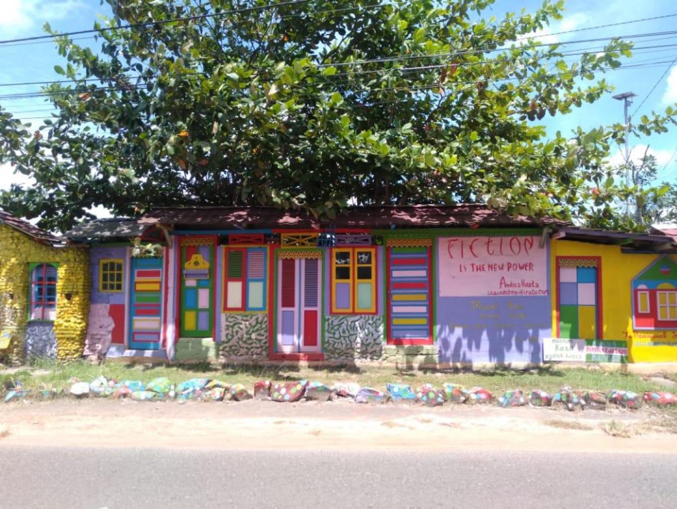 Meski banyak memasukkan karya penulis luar, kearifan lokal tak luput dihadirkan di Museum Kata Andrea Hirat. Seperti ruangan yang mengenalkan geografi Belitung Timur lengkap dengan contoh bebatuan asli di tempat ini, yakni batu Satam. Dengan membayar tiket sebesar Rp 50000, pengunjung selain bisa masuk museum menikmati dan tau sejarah tetang Museum Kata Andrea Hirata selain itu juga dapat Buku Novel Andrea Hirata dan menikmati Kupi Kuli khas Desa wisata Lenggang.