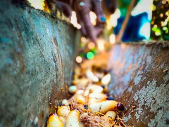 sayuran dan bumbu organik ditanam melalui limbah olahan sagu/ela yang sudah menjadi kompos dengan media kulit kayu sagu alas/lantai, gabah sebagai pembatas dan untuk menampung kompos